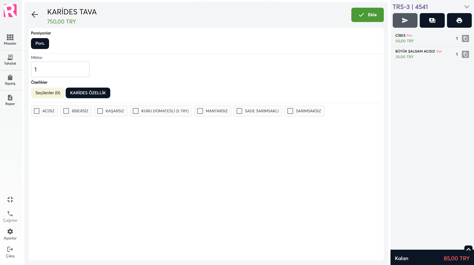 • Verilen siparişlerin ürün bazında çeşitli açıklamalar ile ayrıntı girişinin sağlanması. (Az pişmiş, Tam yağlı, sade, buzlu v.b.)