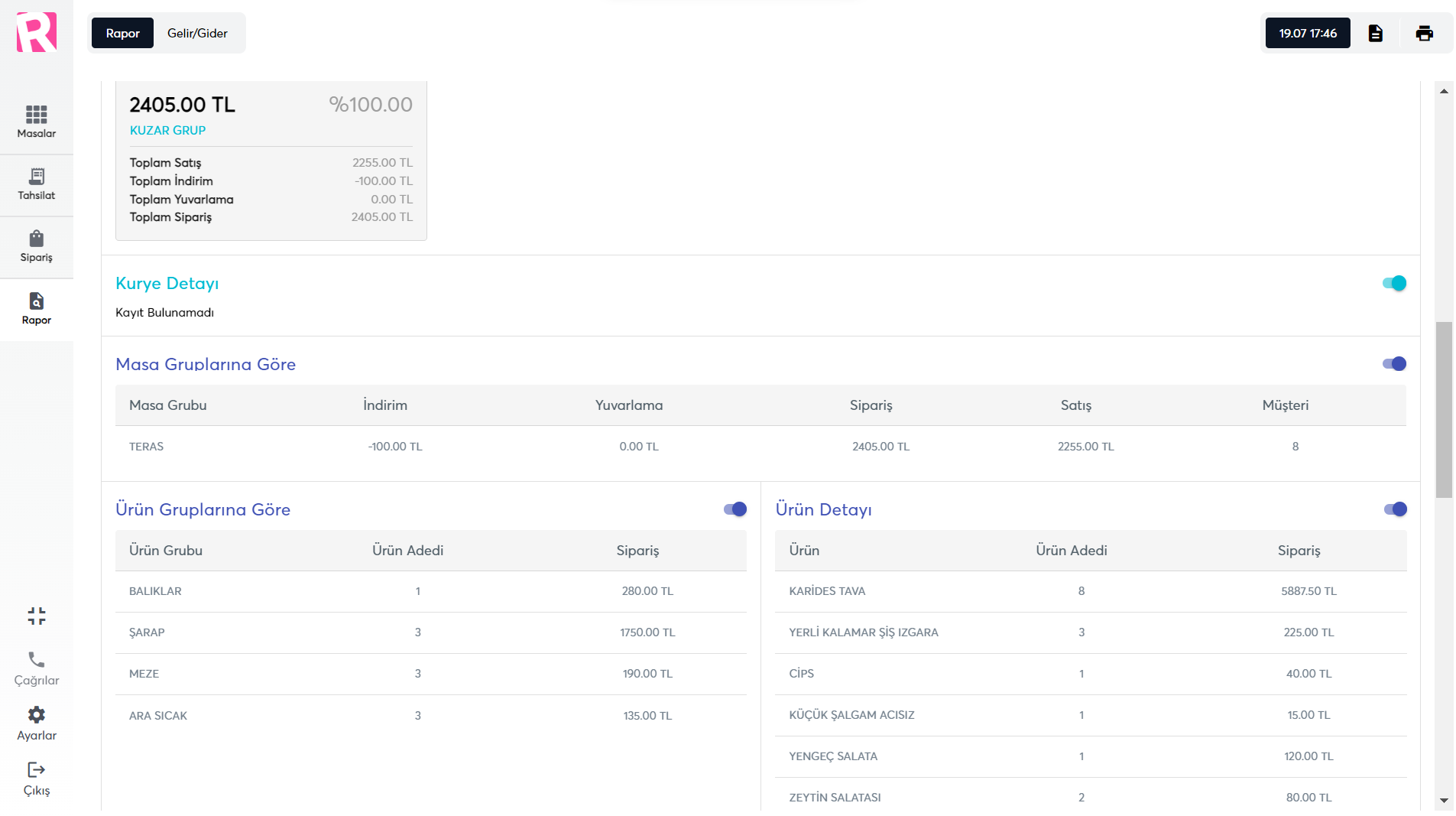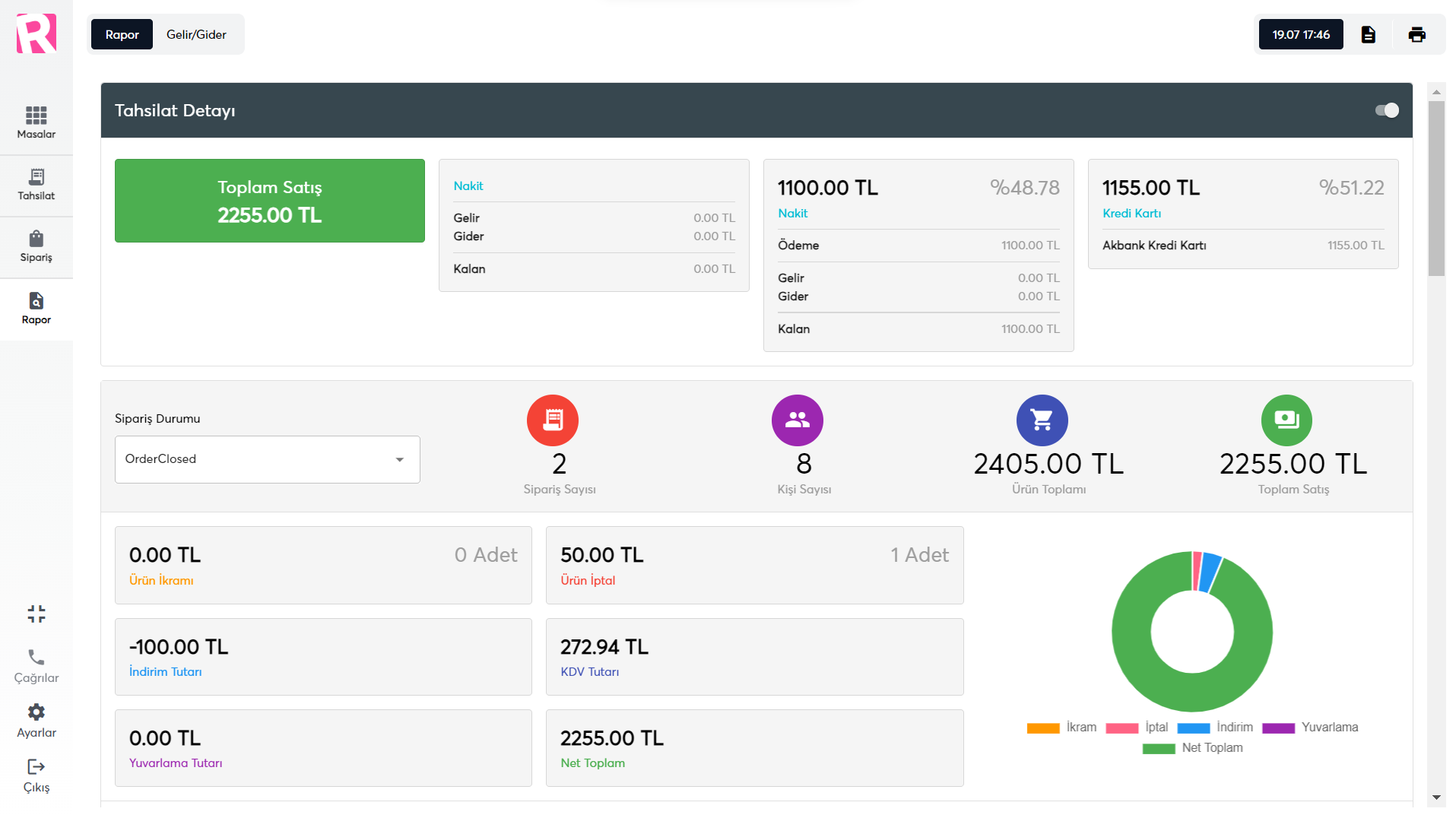 • Garson bazında satış ekranlarında gerekli ayrıntılı icmallerin alınabilmesi.