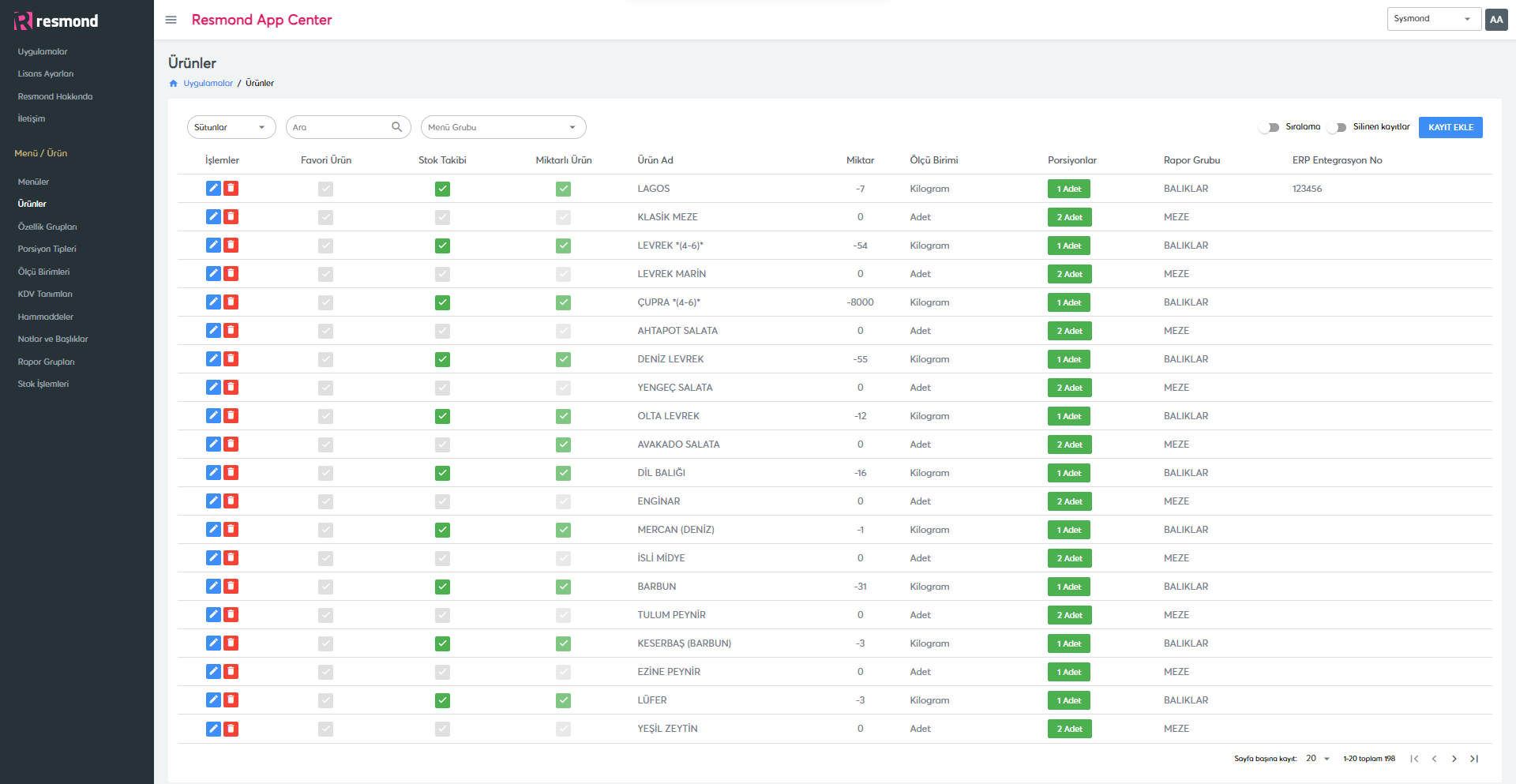 • Sysmond sysBase ve sysPRO ile entegre çalışmaktadır. Böylece, hem departmanlara göre satış ve stok, hem garsonlara göre satış, hem de masalara göre satış bilgileri hızlı ve hatasız olarak toplanır ve bu konulardaki kaçaklar minimize edilir. Stok üretim modülü sayesinde ürün reçeteleri hazırlanabilir. Ürün maliyet bilgileri ile analiz oluşturulabilir.
